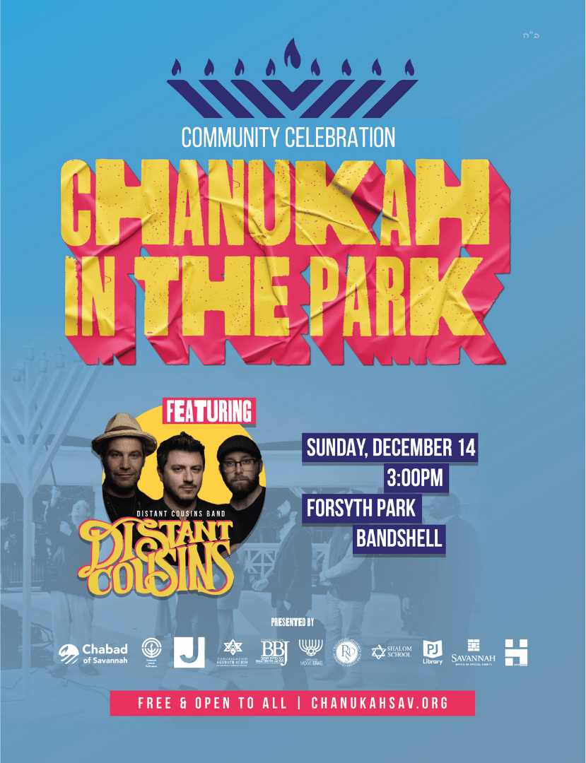 Join us for Chanukah in the Park, Savannah’s vibrant community-wide celebration of light, unity, and joy! Presented by Chabad of Savannah, this festive afternoon features: